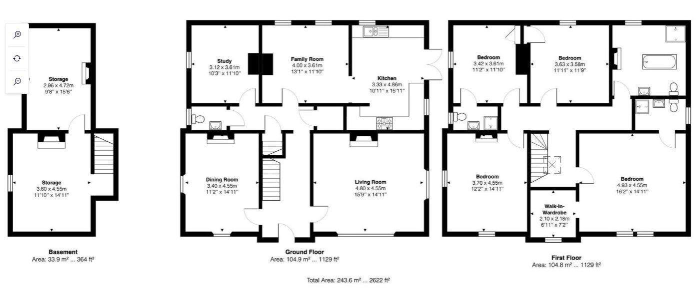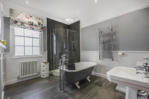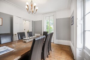 ** CHAIN FREE ** A Unique Grade II Listed Landmark Residence in the Heart of Ware. Steven Oates are delighted to offer this exceptional detached Grade II Listed mid-19th century stone-built residence, a true landmark property discreetly nestled in a private setting right in the centre of Ware. This stunning home offers deceptively spacious and versatile accommodation, blending a wealth of beautifully preserved original features with high-quality contemporary finishes. The interior is elegantly arranged over two floors, plus a basement, and includes: A grand entrance hall setting the tone for the character and charm throughout, dual-aspect living room filled with natural light, generous formal dining room perfect for entertaining, dedicated study ideal for home working, downstairs WC, spacious family room opening seamlessly into a superbly fitted bespoke kitchen with direct access to the garden, basement level offering two large storage rooms. To the first floor are four double bedrooms, including: two bedrooms with en suite shower rooms. Walk-in wardrobe to the principal bedroom. A well-appointed family bathroom. The property is rich in period detail, including feature fireplaces in most rooms, ornate coving, picture rails, high ceilings, stripped wood flooring, attractive tiled flooring, statement windows, and original working shutters all contributing to its timeless elegance. Outside, the home benefits from a mature walled garden, offering privacy and tranquility, as well as a gated gravel driveway providing off-street parking.