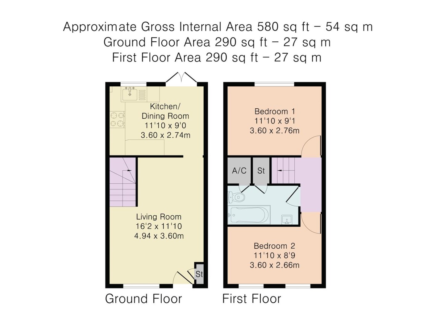 - 2 bedrooms