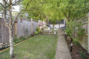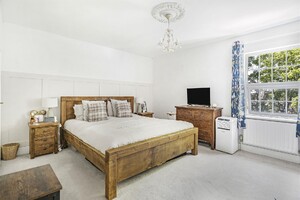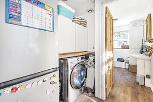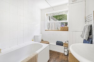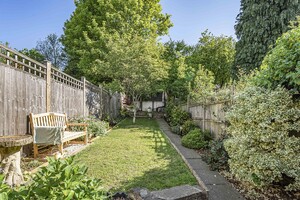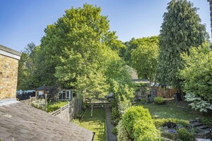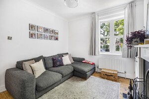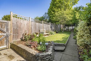 Outside, there's a sunny, enclosed rear garden stretching approx. 110ft with lawn and terrace. The front has a brick wall and gate.