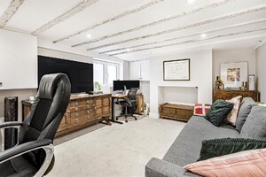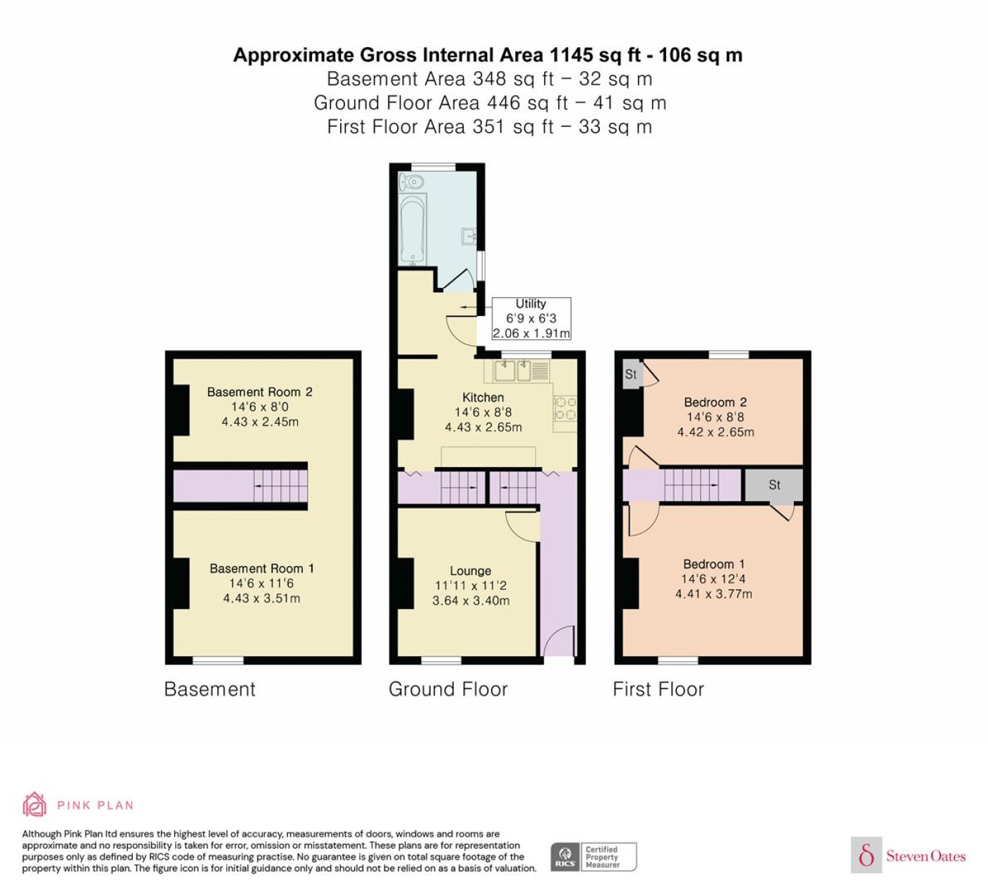 Set over three floors, the property features generous room sizes and scope to improve or extend. The ground floor includes a living room, kitchen, lobby, and bathroom. The basement level offers two usable rooms with good head height, one with a window. Upstairs are two double bedrooms.
