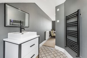 Steven Oates is delighted to present this beautifully extended three-bedroom mid-terrace character home, ideally located just moments from Ware High Street, train station and its excellent range of amenities. Tastefully modernised to a high standard by the current owners, the property seamlessly blends period charm with contemporary living. The ground floor features a spacious lounge leading into a stunning extended kitchen/diner, complete with doors opening out to the landscaped rear garden perfect for entertaining. Upstairs, the first floor offers two well-proportioned bedrooms and a brand new stylish family bathroom. A standout feature of this home is the newly built second-floor extension, which boasts a generous double bedroom and an elegant open-plan bathroom, creating a luxurious and private retreat. Externally, both the front and rear gardens have been thoughtfully landscaped, providing attractive and low-maintenance outdoor spaces.