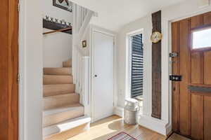 An immaculate three bedroom barn conversion forming part of the exclusive and highly sought-after High Leigh Barns development, ideally located on the outskirts of Hoddesdon town centre and Goose Green. This exceptional home is presented to an high standard throughout, beautifully blending character features with contemporary finishes. The ground floor offers a bright entrance hallway, comfortable lounge leading into a separate dining room, a well-appointed fitted kitchen, and a handy ground floor cloakroom. The first floor comprises of a principal bedroom which benefits from an en suite shower room, complemented by two further bedrooms and a family bathroom. Externally, the property enjoys a well-maintained rear garden, along with the added benefit of a garage and two allocated parking spaces. This property combines countryside charm with modern living, this unique home offers an exceptional lifestyle opportunity in a highly desirable setting. The property is also within very close proximity to Barclay Park and Hoddesdon Park Woods.