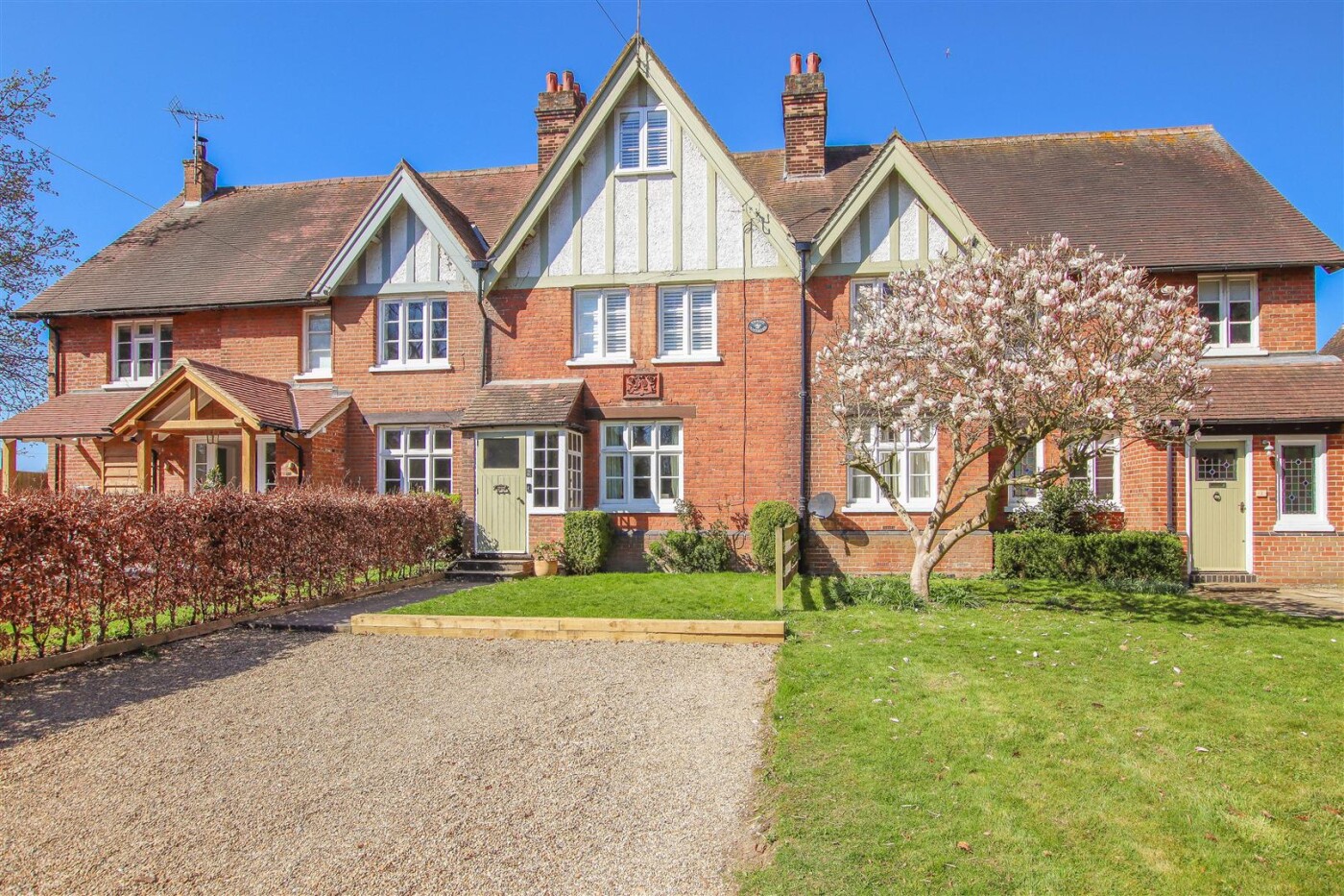 A beautifully presented and extended character family home located in an ideal position between both the desirable village of Brickendon and Hertford itself. The Stylish accommodation comprises of an entrance hall, living room with open fire, additional rear sitting room with log burner, large kitchen/diner with a separate utility room and downstairs wc. On the first floor, there are 2 good size bedrooms and a family bathroom, whilst on the second floor, there is another double bedroom with a large en-suite bathroom. Externally, the property is approached by a driveway providing ample parking. The rear garden has been professionally landscaped and enjoys a sunny aspect, in addition to a substantial, high end outbuilding comprising of a large studio/home office and a large garden store. Internal viewing is highly recommended!