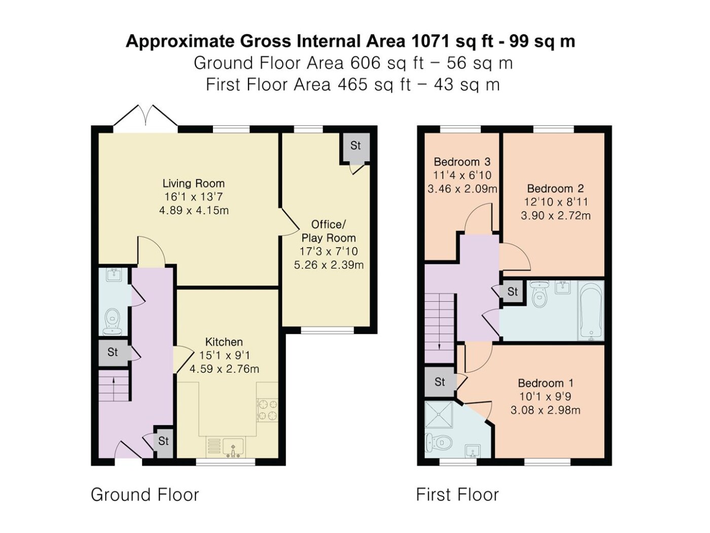 - 3 bedrooms