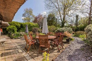 A truly unique opportunity to own this stunning Grade 2 Listed period thatched home (c. 1650) offering light and airy accommodation with high vaulted ceilings, due to the first floor being removed 100+ years ago to create the height; and an additional 2 bedroom detached self-contained annexe. The property is set within outstanding gardens of 1.25 acres in one of the area's most sought after village locations. The main house includes 4 bedrooms with 2 large bathrooms, along with 2 reception rooms and a kitchen/breakfast room. In addition to the main house, the detached annexe comprises a large open plan living space, plus a bedroom/office with a spiral wine cellar underneath, a bathroom on the ground floor and a large first floor bedroom. Externally, the property is accessed via a substantial gated driveway, whilst the gardens that surround the house are exceptional, featuring two large koi fishponds, many mature specimen trees, and a real sense or escapism. Viewing is essential to fully appreciate this charming and historic home.