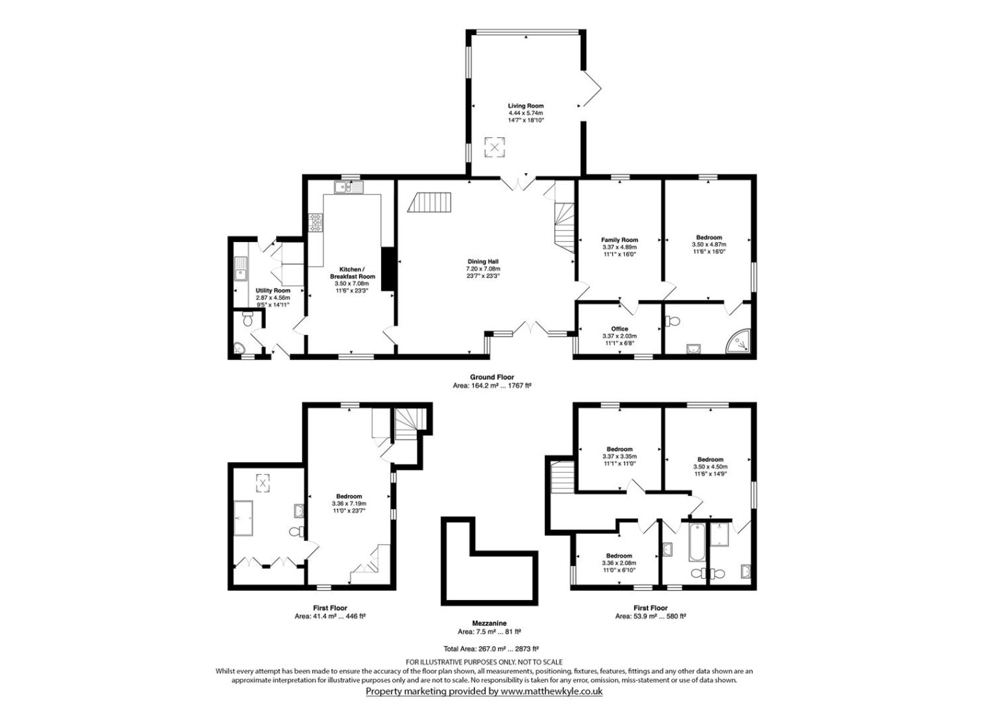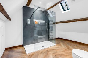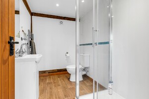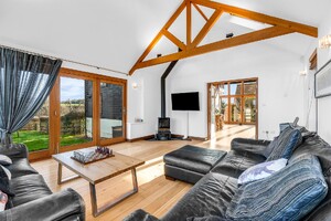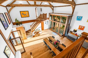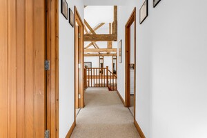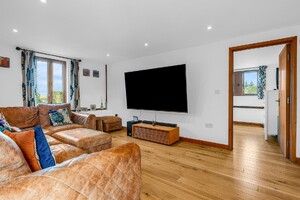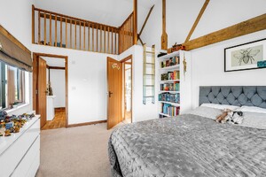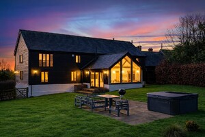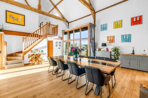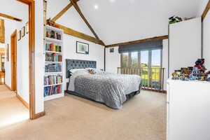 Set within an approximate one-acre plot, this exceptional detached Grade II listed barn offers a superb balance of historic character and refined contemporary living, surrounded by open countryside and far-reaching rural views. Beautifully appointed throughout, the property displays an abundance of exposed beams and original features, seamlessly complemented by high-quality finishes. The ground floor accommodation is both generous and versatile, featuring a stunning rear living room enjoying uninterrupted views over the garden, and an impressive central dining hall with dramatic vaulted ceilings and a feature wood-burning stove. Further ground floor highlights include a beautifully appointed kitchen/dining room, separate utility room, cloakroom, additional reception room, and a study ideal for home working. A well-proportioned ground floor bedroom with en-suite shower room completes the accommodation on this level. The first floor is a particularly notable feature, accessed via two independent staircases forming a galleried landing overlooking the dining hall. One wing is dedicated to the luxurious principal suite, complete with a stunning en-suite bathroom, while the second wing provides three further bedrooms, an additional en-suite, and a family bathroom. Externally, the property enjoys a private and secluded setting, with beautifully maintained grounds, carport and driveway parking, and uninterrupted views across rolling countryside, offering a true sense of tranquillity and exclusivity.