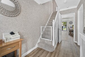 Nestled on the charming Chestnut Avenue in Ware, this beautiful five-bedroom family home offers a perfect blend of space, comfort, and modern living. Having been thoughtfully extended and tastefully improved, the property boasts two inviting reception rooms, providing ample space for relaxation and family gatherings. The heart of the home is undoubtedly the stunning open-plan kitchen and dining family room, designed with entertaining in mind. This expansive area is perfect for hosting guests or enjoying family meals, creating a warm and welcoming atmosphere. Families will appreciate the converted garage, now a delightful playroom, providing a dedicated space for children to enjoy. On the first floor, there are four generously sized bedrooms so there is ample room for larger families and guests. The second bedroom includes an suite shower room and there is a separate family bathroom suite. On the second floor, The property features an impressive dormer loft conversion, which has transformed the upper level into a luxurious principal bedroom suite complete with a stylish en-suite bathroom. One of the stand out features of this home is the stunning rear garden, offering a safe and easy-to-maintain outdoor area for children to play and for family gatherings during the warmer months.