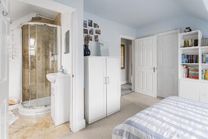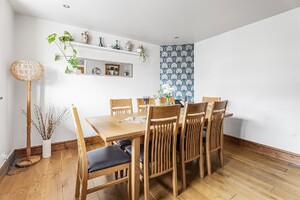This five bedroom detached family home is located in a peaceful and sought-after cul-de-sac in SG13, with easy access to both Hertford and Ware town centres, offering train links into Central London and a wide range of local amenities. Arranged over two floors, the property provides generous and versatile living space throughout. The ground floor features a welcoming entrance hallway leading to a bedroom, dining room, utility room, ground-floor cloakroom, and a spacious kitchen/breakfast room. There is also a separate living room and an additional bedroom with its own en-suite shower room. Upstairs, you will find three further bedrooms, including one with an en-suite, along with a family bathroom. The first floor landing is particularly spacious and is currently used as a study area, providing an ideal home office space. Externally, the property benefits from gated off street parking for several vehicles, and a side driveway, garage, and a beautifully landscaped west-facing rear garden. The garden, designed and maintained by the current owners, offers both seclusion and an abundance of natural sunlight and beautiful views across the meads.