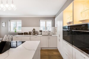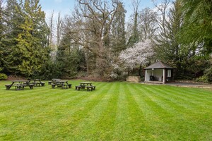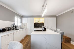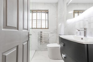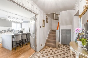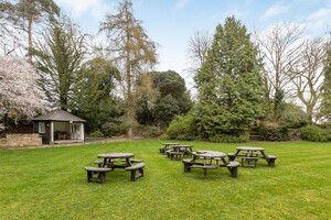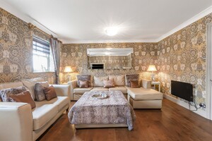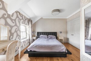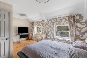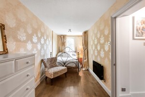 Part of a Victorian conversion in Chapmore End, between Hertford and Ware, this four-bedroom mews house. Recently refurbished, it provides strong natural light, dual aspect sash windows, and modern finishes throughout. Set within well-kept communal grounds, a sweeping driveway leads to the property. A west-facing front garden offers a private seating area with direct access to the shared gardens. The ground floor includes an entrance hall with tiled flooring, bedroom four, a bathroom, and an open-plan kitchen/dining room with island and integrated appliances. The first floor features a living room with views, a modern shower room, and a well-sized second bedroom. The second floor offers a main bedroom with en-suite, along with a third bedroom featuring dual aspect and a circular window. The communal grounds include landscaped gardens, a BBQ area, marquee, and shared facilities. The property also has two allocated parking spaces and visitor parking.