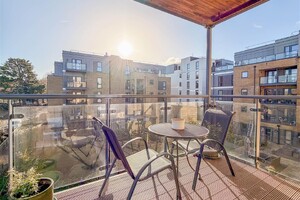 Located on the edge of Hertford town centre, this spacious second floor apartment offers two large double bedrooms, including a principal with walk in wardrobe. The bright lounge opens onto a private Sit out BALCONY looking over the lovely communal gardens . Additional features include a fully fitted kitchen, separate WC, and a utility/store room with washing machine plumbing. Residents enjoy landscaped gardens, a Club lounge, Bistro restaurant, Wellness suite, guest accommodation, and a communal lounge with Wi-Fi. The building also offers lift access, a mobility scooter charging room, and secure underground parking space.