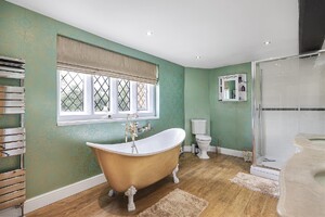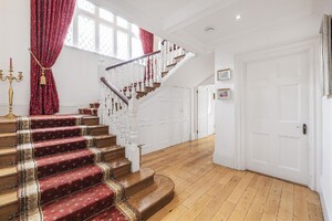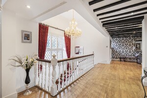 A magnificent 5 bedroom period home forming a substantial section of this historic country home located towards the end of a long, private drive in the heart of the idyllic village of Hertingfordbury. The generous accommodation which extends to 4900 sqft comprises of an entrance porch, impressive reception/dining hall, living room, a substantial 30ft drawing room, kitchen/breakfast room on the ground floor. On the first floor, there is a large landing, main bedroom with en-suite and a guest bedroom with a separate bathroom. On the second floor, there are 3 further good size bedrooms and an additional bathroom. The basements are currently used as a recording studio and great storage. Externally, there are generous private gardens, a double garage and ample parking, along with shared grounds of some 7 acres which include a large lawned garden to the front, attractive woodlands, which adjoins a quiet section of the River Mimram. Hertingfordbury Park has been known as far back as the 1285, as was once a favourite royal hunting ground associated with Hertford Castle. The house that sits now is believed to date back to 17th century with substantial additions in the 19th and 20th centuries.