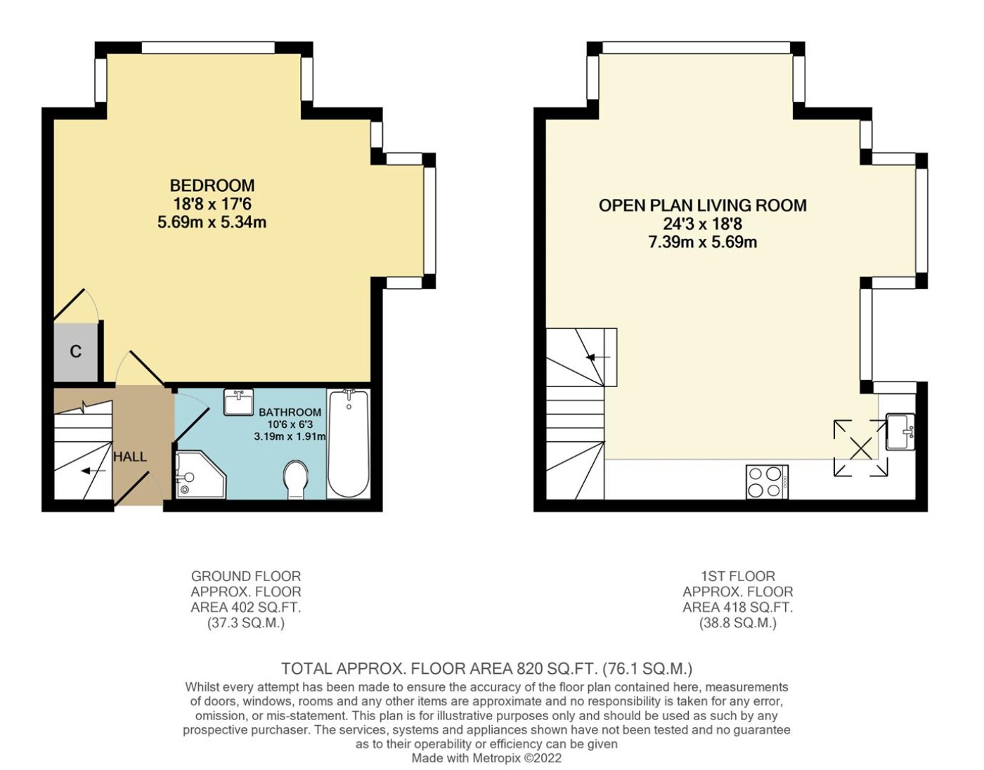 OVER 800 sqft! Tucked away in a quiet location in the heart of Hertford's town centre is this spacious one bedroom split level 'mews style' property. The property offers similar square feet to a two bedroom property, however is arranged in larger rooms over two floors. The property is accessed via a gated entrance leading to a secure entrance lobby to just 2 properties. Inside on the ground floor, there is a large double bedroom and spacious bathroom, whilst on the first floor, there is a large open plan living space including a fully fitted kitchen. The living space bellows light with a south and westerly dual aspect including two large bays. Chain Free - Viewing By Appointment.