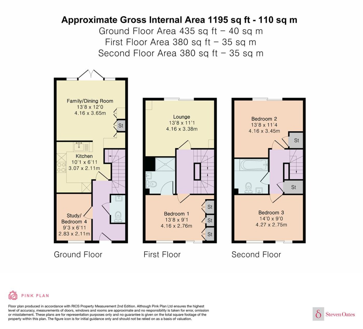 ** PRICED TO SELL ** Steven Oates are delighted to offer this immaculately presented four-bedroom family home which is positioned perfectly in this sought-after cul-de-sac offering town centre convenience whilst remaining in a quiet location. Built approximately 9 years ago, this modern townhouse is deceptively spacious throughout boasting stylish and modern accommodation spread over three floors. On the ground floor you are welcomed by an entrance hallway with a useful downstairs w/c, storage cupboards and a study which makes an ideal work from home space or play room. There is also an impressive open plan kitchen/living space which has French doors leading straight onto the garden. On the first floor, you will find a cosy living room which can be easily used as another bedroom and across the hall there is a bright & airy main bedroom with en-suite shower room. On the second floor, there is a further two generous size double bedrooms and a family bathroom suite. Externally, this property benefits from driveway parking for two vehicles and a beautiful low maintenance garden to rear. Internal viewing is highly recommended to appreciate this stunning family home.