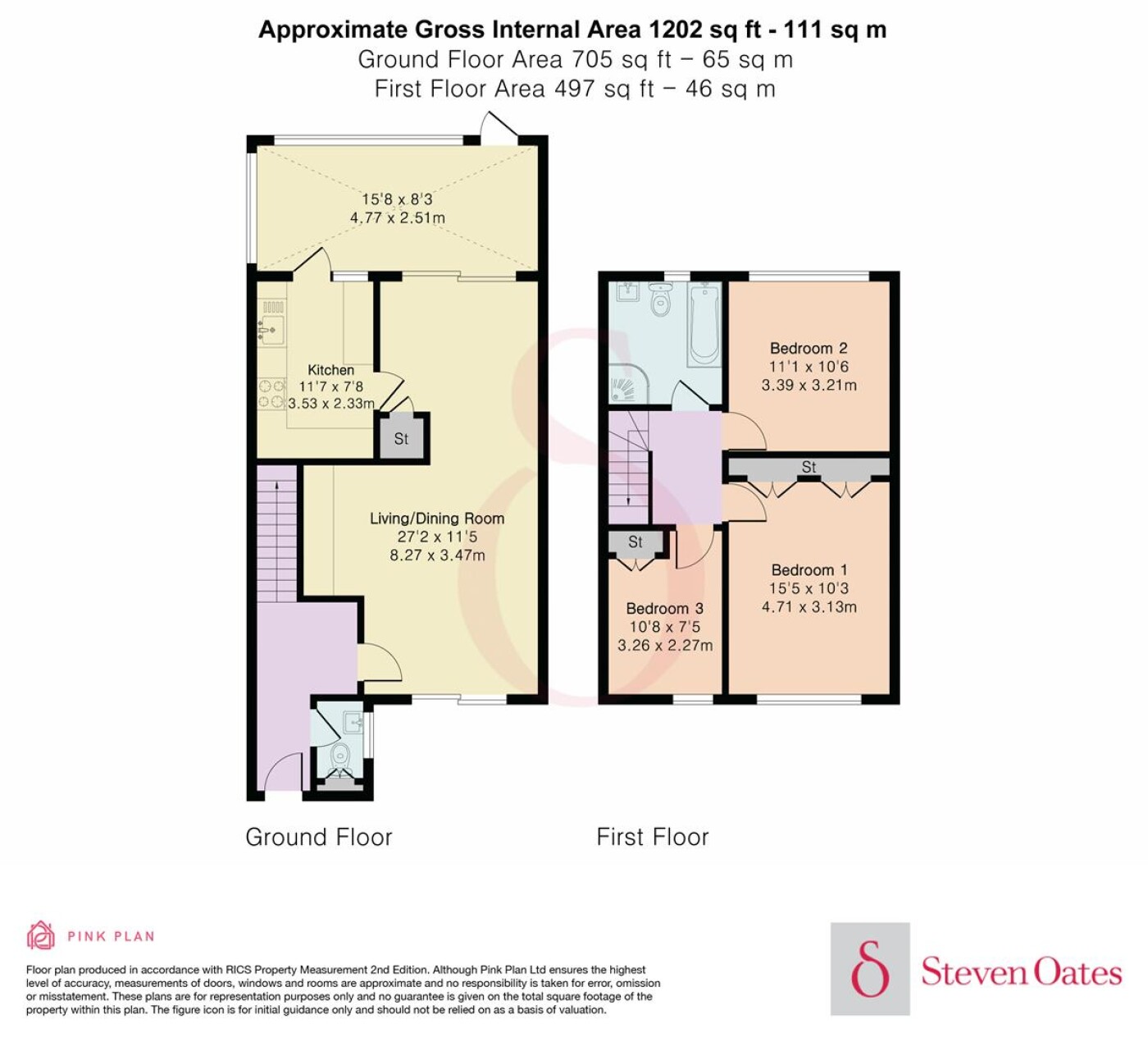 A spacious three-bedroom mid terrace family home, ideally located within a short stroll of Hertford’s highly regarded schools, including Simon Balle, Richard Hale, and Abel Smith Primary School. The property offers generously proportioned accommodation extending to approximately 1,202 sq ft, arranged over two levels. The ground floor comprises a welcoming entrance hallway, cloakroom, and a bright 27 ft lounge/dining room, which flows through to the kitchen and features double doors opening into the conservatory. Upstairs, there are three well-sized bedrooms and a family bathroom fitted with a four-piece suite. Externally, the front garden is private and paved to enjoy the afternoon sun, while the rear garden is predominantly laid to lawn. Additional benefits include on-street parking and a garage en bloc. The property is offered with no onward chain.