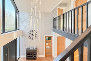 A stunning highly individual 4/5-bedroom detached house that is set in a premium residential location. The versatile accommodation features an impressive vaulted entrance hallway, Living room with log burning fire and doors, stunning L-shaped open plan kitchen diner with lantern roof and full width bifold doors leading out on to the garden, large separate utility room with direct access to the front and back of the house and brand new downstairs bathroom. There are large double bedrooms on the ground floor which could also be used for other purposes like a gym or office. A bright and airy staircase leading to the first floor landing which looks down over the large entrance lobby, the first floor comprises of three large double bedrooms with fitted wardrobes, the principal bedroom has a lovely en-suite shower room, and there is also a good size family bathroom. Externally the property has a good size landscaped rear garden and parking for several cars.