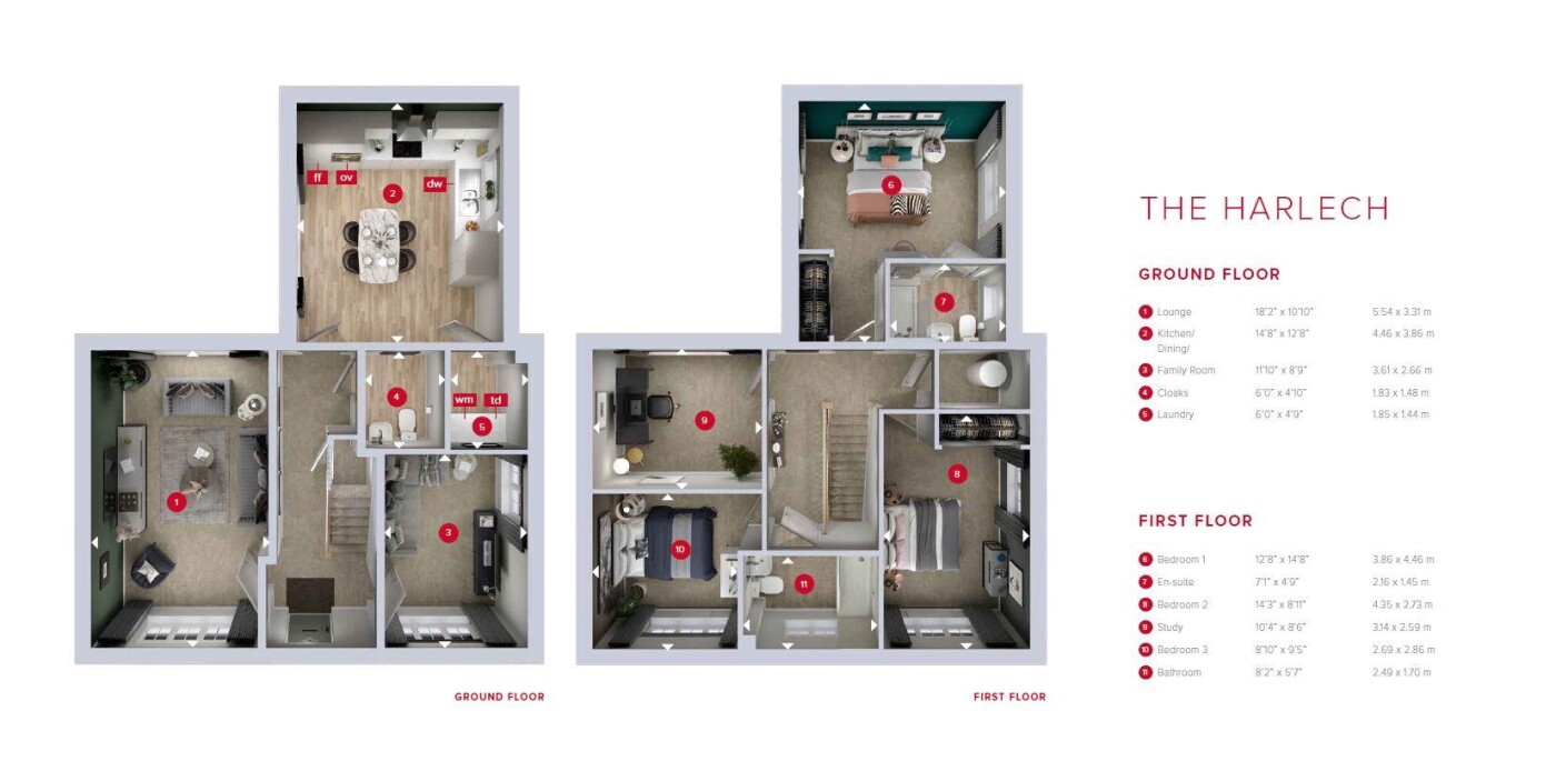 The Harlech - A beautiful 3 bedroom/3 bathroom detached family home located on the exciting new development at Hazel Park. Part of the Redrow Heritage collection, The Harlech offers spacious accommodation which includes a spacious entrance hall with downstairs wc, living room, play room, a fully fitted open plan family kitchen/diner and a utility room. On the first floor, there are 4 double bedrooms, a family bathroom and en-suite to the main bedroom. 1353 square feet.