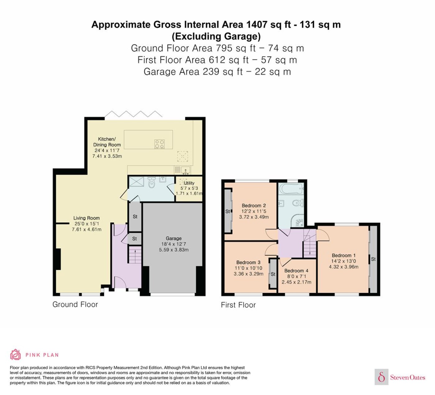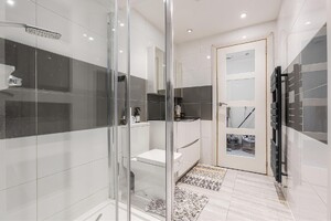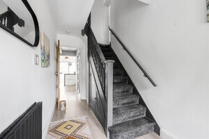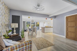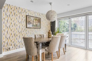 Arranged over two floors, the home provides well-proportioned accommodation throughout. The ground floor features a welcoming entrance hallway leading to a dining area that flows seamlessly into the lounge and a sociable, open-plan kitchen. There is also a ground-floor shower room and a practical utility room. To the first floor, there are four generously sized bedrooms and a family bathroom. Externally, the property benefits from off-street parking for at least four vehicles, along with access to a garage. The rear garden is designed for low maintenance, featuring a paved terrace with steps leading up to a lawned area, ideal for outdoor relaxation and entertaining.