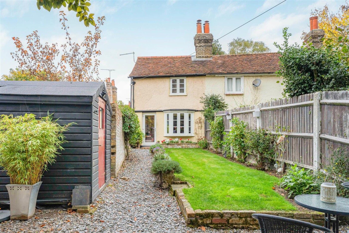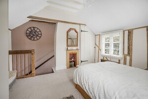 Tucked away in a peaceful and idyllic position at the heart of this highly desirable village, this delightful 2 bedroom semi-detached period cottage offers character, charm, and generous outdoor space. Offered chain free, the property features beautifully presented accommodation and boasts 100ft gardens. The ground floor comprises an inviting entrance hall, a characterful living room with log burning fire, and a county style kitchen breakfast room. Upstairs, there is a large vaulted bedroom leading through in to a second bedroom perfect as a dressing room, nursery, or guest bedroom. Externally, the cottage enjoys attractive, secluded and mature 100ft gardens. With two useful outbuildings one situated to the rear for storage for hobbies or a work from home room, the second outbuilding has plumbing so could work as a laundry/wash room, and leads in to a studio room which could act as a guest bedroom. A rare opportunity to acquire a period home in a truly special setting. Viewing is highly recommended.