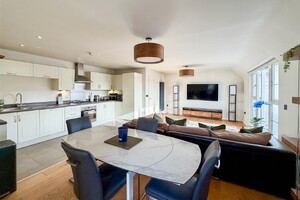 OFFERED CHAIN FREE - Steven Oates are delighted to present this beautifully appointed and rarely available three-bedroom penthouse apartment, occupying a prime top-floor position within a contemporary development. Extending to almost 1,200 sq ft, the property offers luxurious and exceptionally spacious accommodation throughout. The heart of the home is the impressive 29ft open-plan kitchen, living and dining area, perfectly designed for both everyday living and entertaining, with direct access to a private sit-out balcony. All three bedrooms are generous doubles, with the principal suite further enhanced by its own private balcony, dressing area and stylish en-suite shower room. A separate, fully refitted family bathroom completes the internal accommodation. Externally, the property benefits from secure underground parking for two vehicles, adding both convenience and peace of mind.