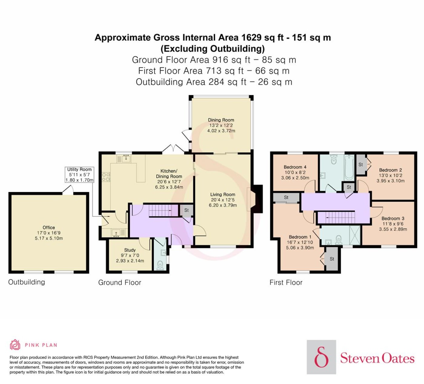 ****CHAIN FREE**** A spacious and extended 4 bedroom detached family home located within a popular residential road offering easy access to the town centre and excellent schooling for all ages. The well presented accommodation comprises of an entrance hall with downstairs wc, large living room, study, refitted kitchen/diner, garden room and a utility room on the ground floor. On the first floor, there are 4 bedrooms, a family bathroom and en-suite shower room. In addition to the main house, the detached double garage has been converted into a large games room/studio. The gardens have also been professionally landscaped and a driveway for two cars.