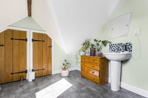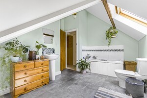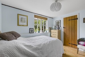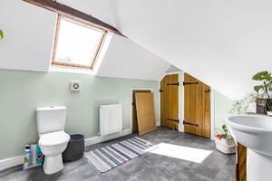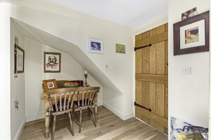 Steven Oates are delighted to offer this absolutely stunning two-bedroom barn conversion which is perfectly situated in this idyllic semi-rural location. This barn forms part of this beautiful farm conversion which boarders Brickendon woods offering peaceful living and countryside walks whilst only being a short distance away from Hertford Town Centre which really gives residents the best of both worlds. This deceptively spacious home offers modern accommodation across two floors, the ground floor welcomes you in via an entrance hallway where there is a useful storage cupboard, you will also find a good size ground floor bedroom with an en-suite shower room which is currently used as the guest suite. There is a spacious kitchen which offers integrated appliances and there is room for a small dining table & chairs. At the rear of the property you step down into the impressive living/dining room which is perfect for entertaining guests. The upstairs all forms part of the main bedroom suite where you will find a generous size bathroom and a bedroom with countryside views, there is also useful eaves storage cupboards in both rooms. Externally, this property comes with the added benefit of a private front garden, allocated parking for two vehicles, additional parking for visitors and a large communal garden for the residents to enjoy in the summer months.