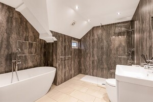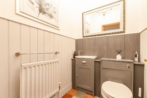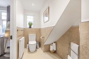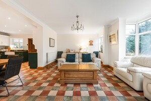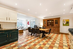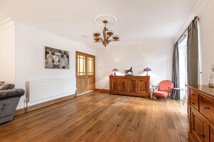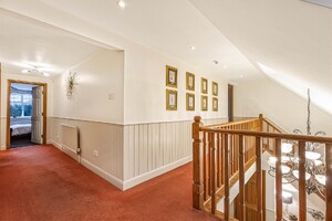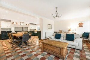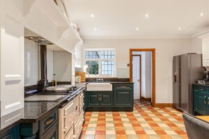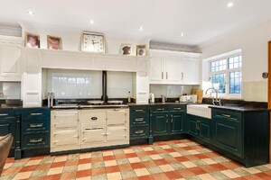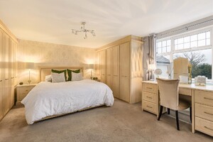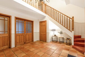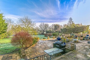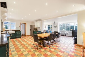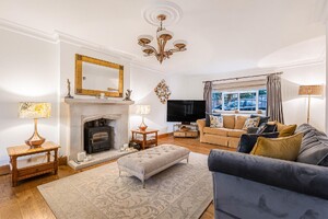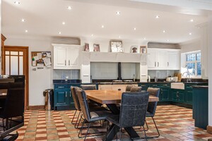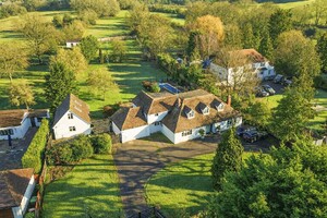 Set behind gates within a private 1.25-acre plot, Little Brambles is a substantial detached family residence extending to over 3,700 sq ft of spacious and modern accommodation. As you step inside there is a welcoming reception hall with storage and stairs rising to a galleried landing. Double doors lead to the impressive dual-aspect living and dining room, featuring a stone fireplace with log-burning stove and two sets of doors opening onto the rear garden. A separate drawing room enjoys a front aspect and a brick fireplace with log-burning stove. The heart of the home is the farmhouse-style kitchen/breakfast room, fitted with an Aga, Belfast sink and a range of units, opening into a bright garden room with bay window and doors overlooking the stunning garden. A lobby area provides a walk-in pantry, guest cloakroom and utility/laundry room with access to the garden and double garage.