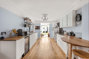 This beautifully presented three-bedroom end-terrace period home combines elegant original features with a modern layout designed for comfortable family living. The ground floor includes a welcoming entrance hall, a bright bay-fronted living room with high ceilings, and an impressive 25-foot open-plan kitchen and dining area, the heart of the home, ideal for entertaining. To the rear, a light-filled conservatory opens directly onto the garden, creating a seamless connection between the indoor and outdoor spaces. A useful utility room and guest WC complete this level. The lower ground floor provides a versatile additional space that has served multiple purposes over the years currently arranged as a home gym, it offers excellent potential as an office, cinema, or playroom. Upstairs, there are three double bedrooms served by a well-appointed family bathroom. Externally, the property enjoys a private south-west facing garden with a low-maintenance design, and off-street parking to the front.