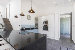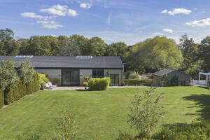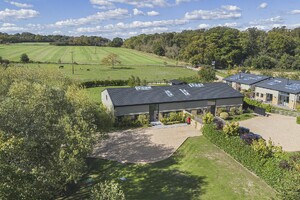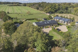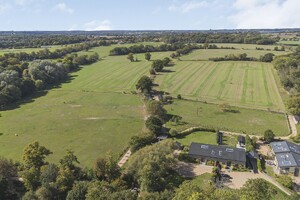 Mortimer House is an exceptional barn conversion, completed in 2019 to an impeccable standard, offering approximately 4,300 sq ft of luxurious and versatile living space. Accessed via a private tree-lined lane and secured by electric gates, this remarkable home is nestled in a prime rural setting, enjoying uninterrupted views of the surrounding countryside. Designed with modern living in mind, Mortimer House is arranged over two expansive floors, showcasing high-quality finishes throughout. The property features triple glazing, full-height glass doors, and strategically placed skylights to flood the interior with natural light. Electric Venetian blinds provide both shade and privacy at the rear of the home. The heart of the property is a beautifully designed, fully fitted kitchen complete with a suite of AEG integrated appliances perfect for entertaining or family life. All bathrooms and en-suites feature sleek contemporary white sanitary ware, enhanced by floor-to-ceiling tiling for a crisp, modern finish. Accommodation includes four to five generously sized bedrooms. The standout principal suite benefits from a luxurious en-suite bathroom and a bespoke dressing area, offering a true sanctuary within the home. Externally, Mortimer House continues to impress. A detached gym/studio provides additional flexible space, ideal for fitness, work-from-home, or creative use. Outside kitchen. The oak-framed double garage adds practicality, while the expansive lawned garden and breath-taking rural views complete this truly special residence.