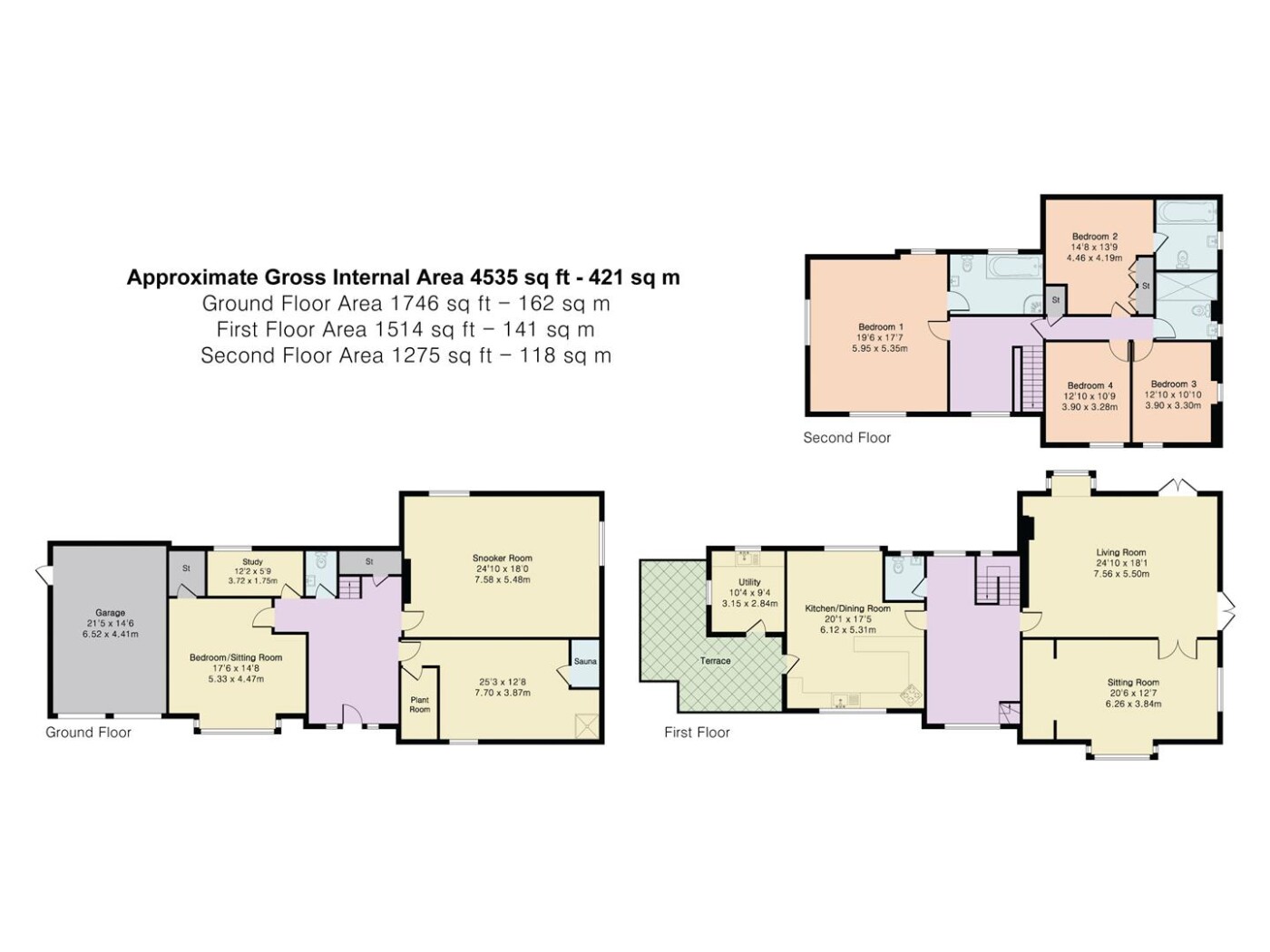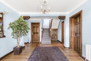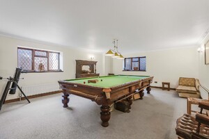 A substantial and individually built detached family home set within a generous plot of 0.8 acre nestled amongst beautiful countryside. The flexible accommodation which is arranged over three floors and extends to 4535 sqft comprises of a large entrance hall with downstairs wc, a large snooker room, gym with sauna, study and a guest bedroom on the lower ground floor. The first floor, which is level with the main gardens, offers 2 large living rooms, a kitchen/diner, utility room and a guest wc. On the second floor, are 4 double bedrooms, a family bathroom and 2 en-suites. Externally, the property is approached by a gated driveway providing extensive parking leading to a large double garage. The gardens surround the property offers a number of features, including a large fish pond and large sun terraces.