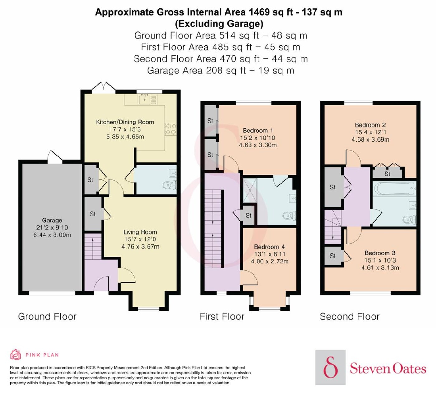 A beautifully appointed four double bedroom linked semi-detached family home, situated within the highly sought-after Blakemore Manor development, conveniently located for Hertford North railway station and the wide range of amenities in Hertford town centre. Arranged over three floors and offering approximately 1,469 sq ft of well-presented accommodation, this excellent family home was built in 2023 and benefits from ample storage throughout. The ground floor features a spacious entrance hallway leading to the lounge and staircase to the first floor. The impressive kitchen/diner spans the rear of the property, providing direct access to the garden. There is also a ground floor cloakroom and a useful larder cupboard. On the first floor, there are two double bedrooms, including the principal bedroom which benefits from its own en-suite shower room. Stairs lead to the second-floor landing. The second floor comprises two further double bedrooms and a modern family bathroom. Externally, the property offers driveway parking and a garage, which can also be accessed from the rear garden. The landscaped rear garden enjoys a sunny southerly aspect and has been thoughtfully designed by the current owners. The property is offered to the market with no onward chain and has 7 years remaining on the NHBC certificate.