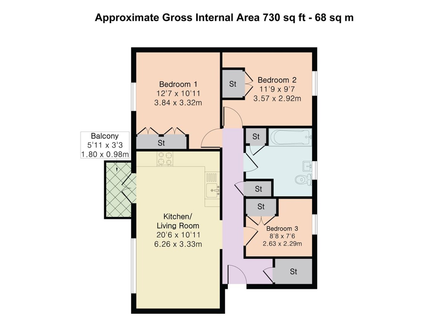 - 3 bedrooms