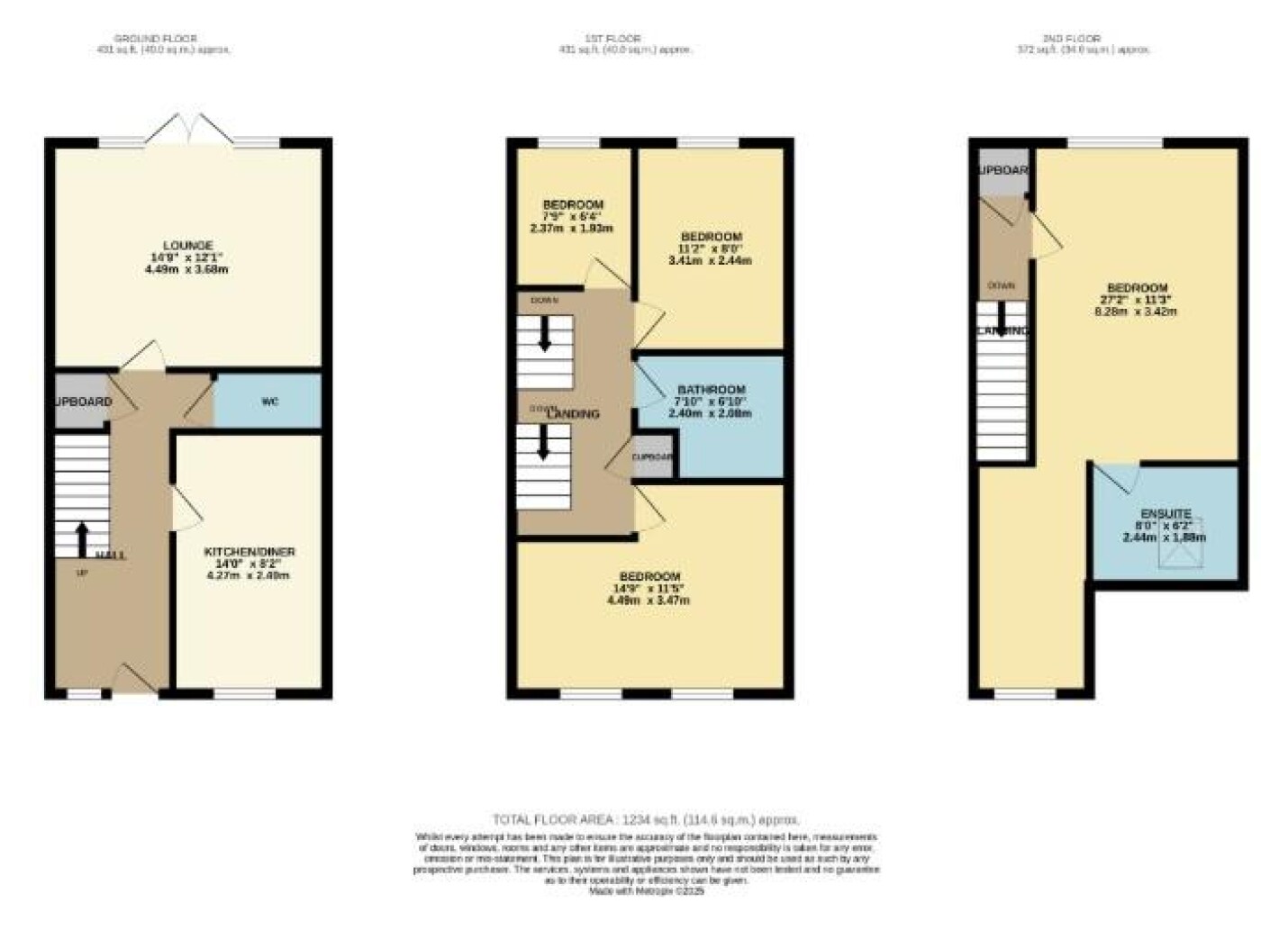 A modern four-bedroom mid-terrace house situated within a popular development, conveniently located for local shops, supermarkets and excellent transport links via the A10 and M25. Arranged over three levels and offering approximately 1,234 sq ft of well-proportioned accommodation, the property is spacious throughout. The ground floor comprises a welcoming entrance hallway, ground floor cloakroom, a fitted kitchen/diner and a generous lounge leading direct to the rear garden. The first floor provides three well-sized bedrooms and a contemporary family bathroom. Occupying the top floor is an impressive 27-foot principal bedroom suite, complete with its own en-suite shower room. Externally, the property benefits from a low-maintenance rear garden, along with allocated parking to the rear and additional visitor spaces.