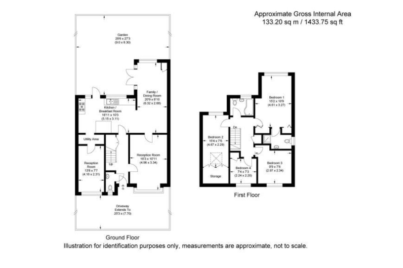 Steven Oates are delighted to present this immaculately presented four-bedroom link-detached family home, tastefully finished to an exceptional standard throughout. Situated on the sought-after Foxholes development, the property enjoys the highly regarded SG13 postcode for schooling and offers convenient access to Hertford Town Centre and Hertford East Train Station, whilst benefitting from a peaceful residential setting. Spanning 1,433 sq. ft. of accommodation across two floors, the home provides well-balanced living space. On the ground floor, there is a a welcoming entrance hallway leads to the spacious lounge, ground floor cloakroom, stylish kitchen/breakfast room, and a versatile family room. The ground floor also benefits from a utility area and an additional reception room, ideal as a study, playroom, or snug. On the first floor, there are four generously proportioned bedrooms, including a master bedroom with a modern en-suite shower room, complemented by a contemporary family bathroom. Externally, the property features off-street parking and a beautifully landscaped, secluded rear garden, perfect for family living and entertaining.