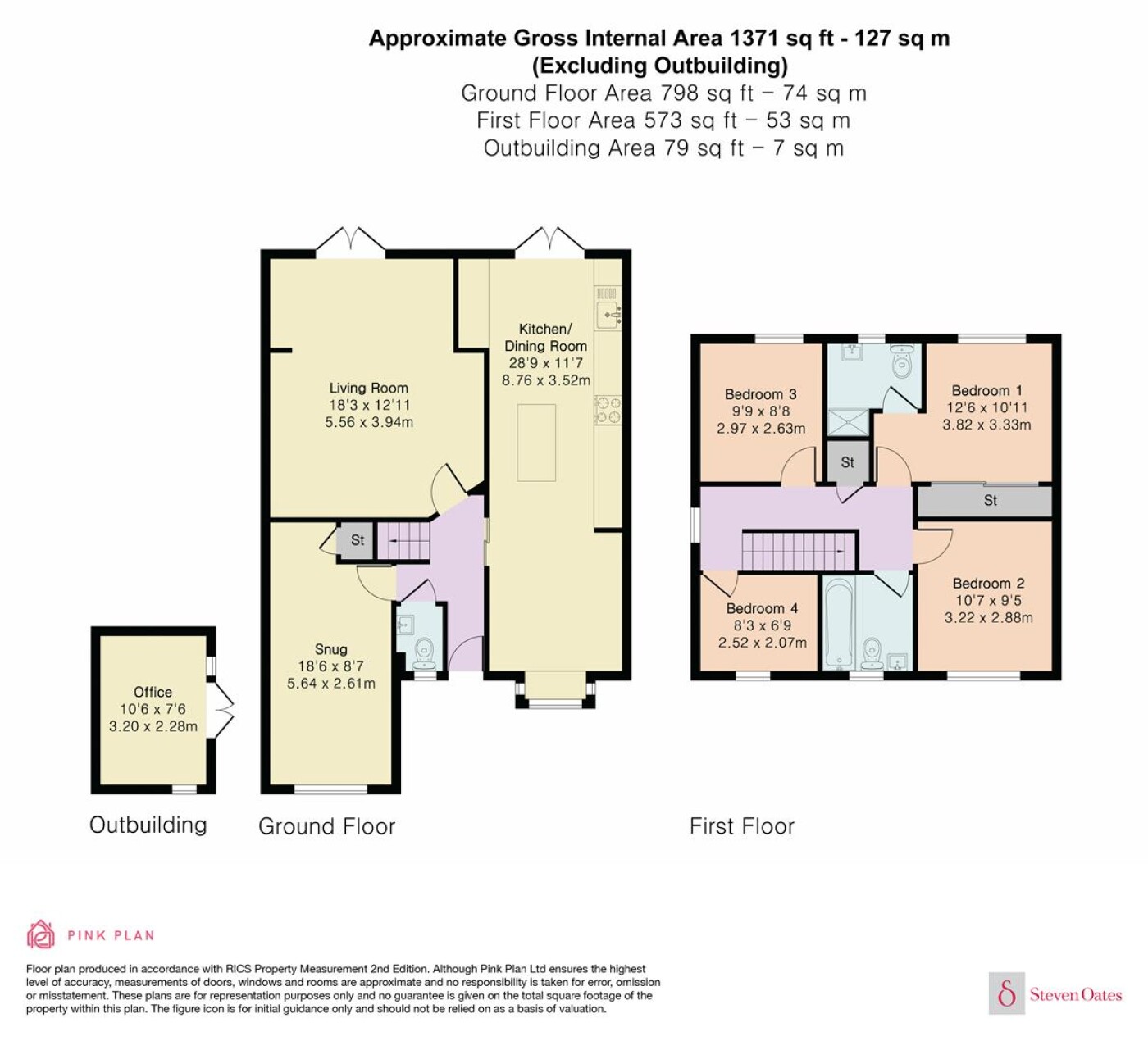 Steven Oates are delighted to offer this four bedroom detached family home situated on the ever popular Foxholes development within a quiet cul-de-sac. This family home has been extended and improved throughout by the existing owners. Arranged over two levels, there is an entrance hallway leading to playroom / reception room, modern kitchen/diner, ground floor cloakroom and lounge. On the first floor, there are four good size bedrooms, the master has its own en-suite and family bathroom. Externally, there is off street parking for three cars and the garden has been landscaped with a paved area, AstroTurf, pergola with seating area and an outbuilding with power and lighting. Internal viewing recommended.