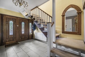 An exceptional opportunity to purchase this spacious five-bedroom detached family home, set within a generous 1.65 acre plot and surrounded by stunning countryside. The idyllic setting offers a true sense of tranquillity and escapism, while remaining just a short distance from the village shop, traditional pubs, and the prestigious Hanbury Manor Golf and Country Club. The versatile and well-proportioned accommodation includes four reception rooms, a kitchen/breakfast room, utility room, five bedrooms, and four bathrooms. A section of the ground floor is particularly well-suited for conversion into a self-contained annexe, ideal for multigenerational living. The property is approached via a long gated driveway that leads to two detached double garages, providing ample parking and storage. The beautifully maintained gardens are mainly laid to lawn, bordered by mature trees and woodland, creating a peaceful and private outdoor haven.