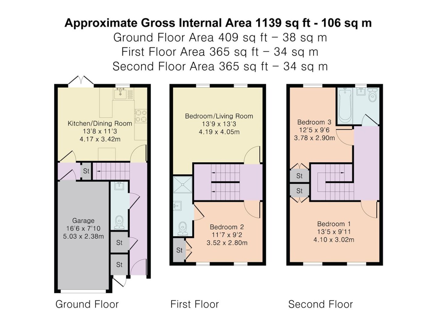 ****VENDOR SUITED**** A spacious 3 bedroom terrace townhouse located within this tucked away town centre location in an attractive courtyard setting and backing onto the leafy church grounds. This excellent modern home comprises of a entrance hall with downstairs wc, a kitchen/diner and integral garage on the ground floor. On the first floor, there is a main bedroom with en-suite shower room and a good size living room. On the second floor, there are another 2 bedrooms and a family bathroom. Externally, there is driveway parking for 2 cars and an attractive rear garden benefiting from a sunny westerly aspect and an unusually high degree of seclusion for a town centre location.