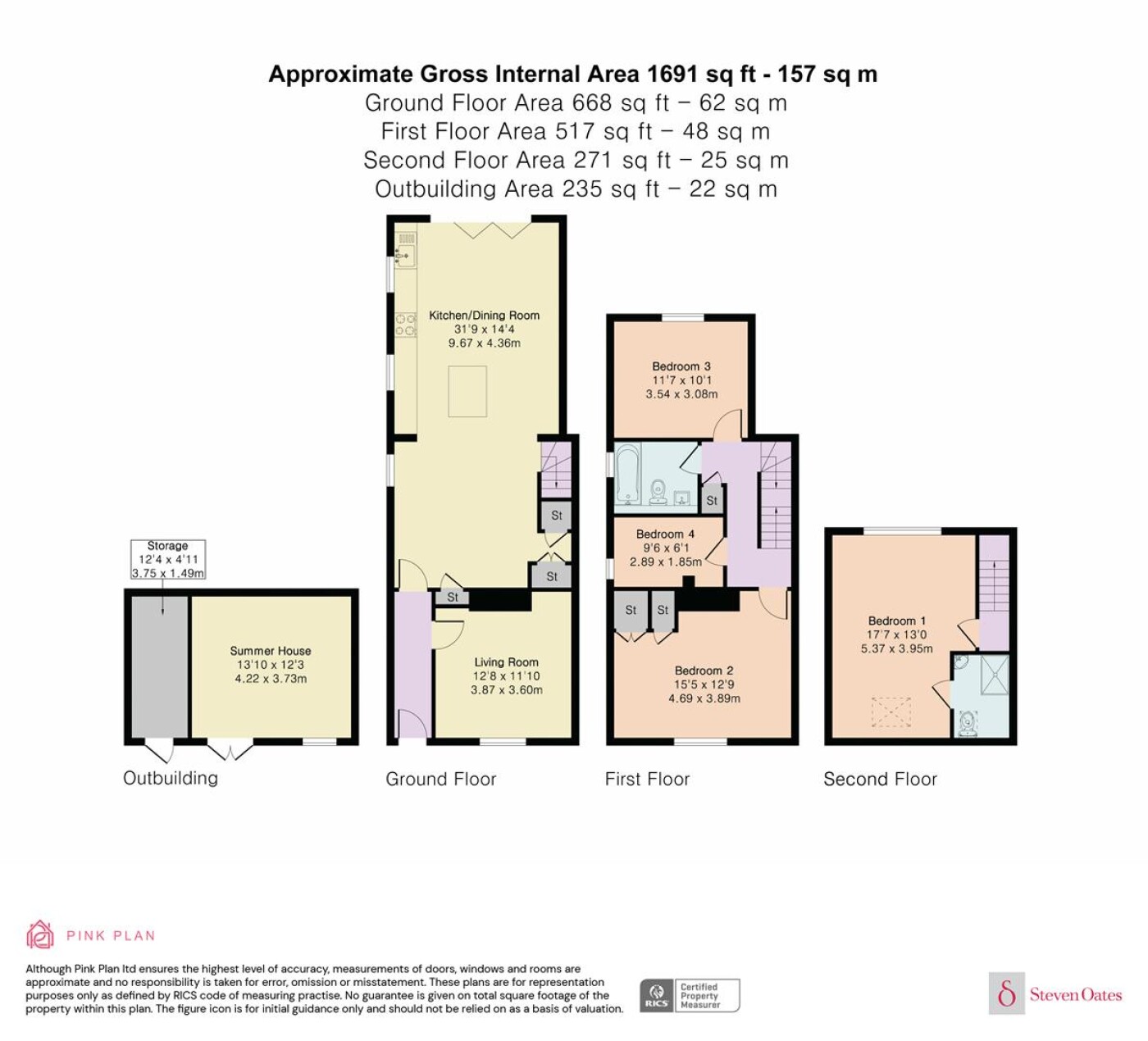 Stepping through the front door there is an entrance hallway, cosy living room with feature fireplace, the entrance hallway leads to a stylish extended open plan kitchen/day room measuring over 30ft in length with a high standard kitchen with central island, ample space for dining / living area, with full width bi-folding doors leading out to the garden. The first floor comprises of 3 bedrooms and modern family bathroom. The second floor has a large principle bedroom with boutique style en suite shower room. Externally the property has a well established 100ft Westerly facing rear garden with a newly built home office set at the rear of garden, newly laid bloc paved driveway providing ample parking for several vehicles.