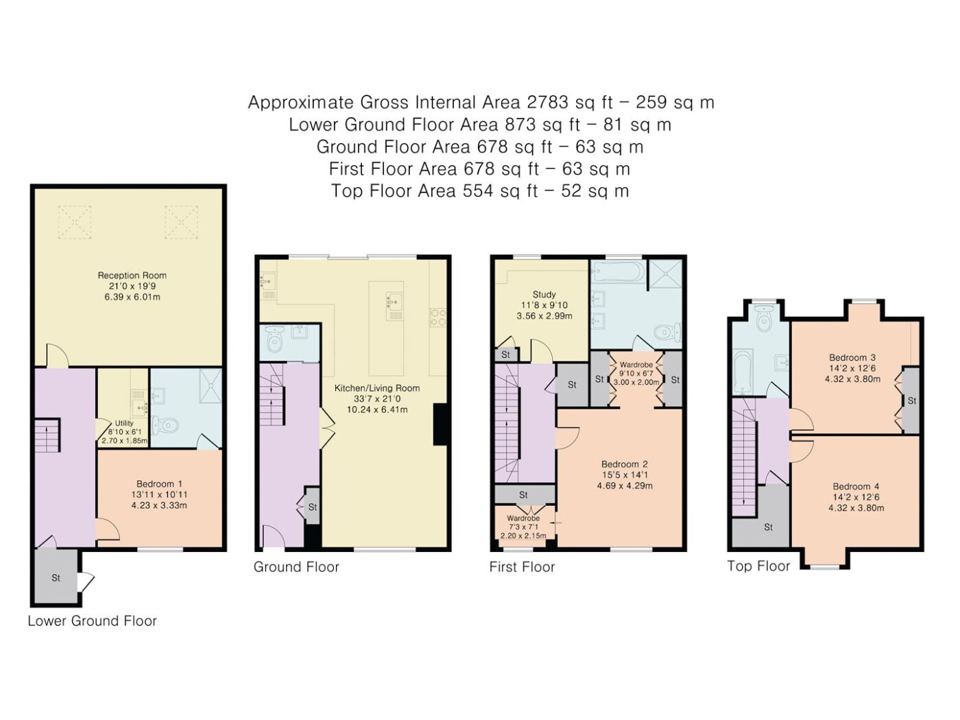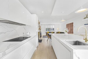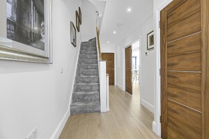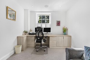 An outstanding and spacious 5 bedroom townhouse built in 2018 to an exceptionally high standard providing stylish and versatile modern accommodation within this highly desirable village. The property benefits from a spacious open plan family kitchen which utilises most of the upper ground floor with the addition of a spacious hall and guest cloakroom, whilst on the lower ground floor, there is a good size living room, utility room and guest bedroom suite. On the first floor, there is a spacious main bedroom suite including a dressing room and walk in wardrobes and luxury en suite, bedroom five which has been professionally fitted as a home office. There are two further double bedrooms and a shower room on the second floor. Externally, the property benefits from a sunny southerly facing rear garden and two allocated parking spaces within the covered residents car park.