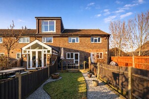 An immaculately presented 2 double bedroom modern house located within a highly sought after cul de sac road, backing on to a nature reserve, within easy reach of Hertford North station and Hertford town centre. The ground floor comprises a entrance porch leading into a spacious living room, which in turn opens into a modern newly fitted kitchen/diner with fully fitted appliances. On the first floor there are two generously sized double bedrooms. The primary bedroom has professionally fitted 'Sharps' wardrobes as an added touch of luxury. Externally, there is a garage en bloc and ample on street parking. The secluded south facing rear garden is designed for low maintenance, with a decked area leading out on to a lawn, along with a rear gate providing convenient pedestrian access. An early viewing is highly recommended to avoid disappointment.