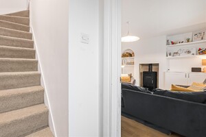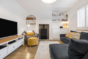 A well-presented three-bedroom end-of-terrace home, ideally positioned within a popular turning in the village of Hertford Heath. The property offers approximately 814 sq ft of modern accommodation arranged over two floors. The ground floor comprises an entrance hallway, a bright lounge featuring a log burner, a contemporary kitchen/diner, and a ground-floor cloakroom. To the first floor are three bedrooms and a family bathroom, with the principal bedroom benefiting from fitted wardrobes and an en-suite shower room. Externally, the property offers off-street parking for two vehicles and a mature, well-maintained rear garden.